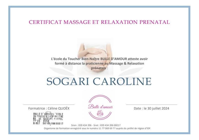 Vous avez également la possibilité de compléter le massage par une séance de relaxation prénatale de 30-45 minutes afin de vous détendre encore plus et de vous préparer à votre accouchement sereinement.